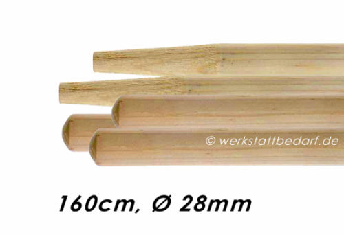 Superstabiler Besenstiel aus Kiefer, Länge 160 cm, Ø 28 mm, mit Konus. Geeignet für alle Besen mit Stielloch. Bitte beachten Sie, Holz ist ein Naturprodukt und kann sich verändern.