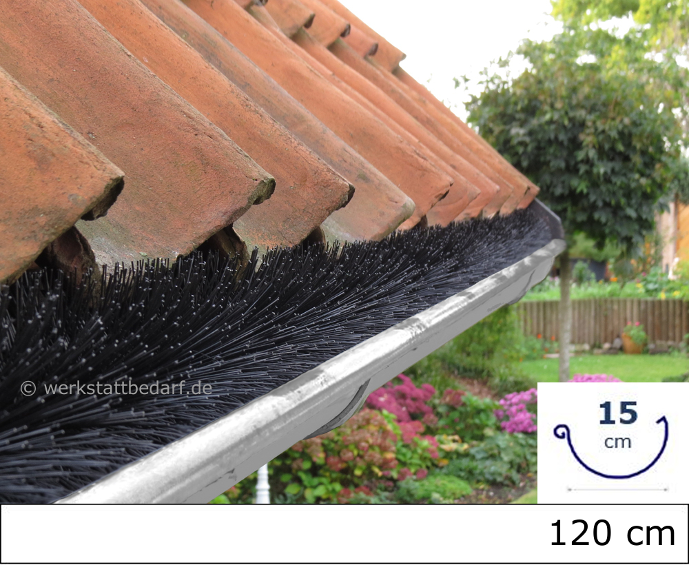 Die Bürste erfüllt ihre Wirkung nur zuverlässig, wenn sie dem Durchmesser Ihrer Dachrinne angepasst ist. Nur so verhindern Sie, dass sie vom Wind herausgeweht werden kann.